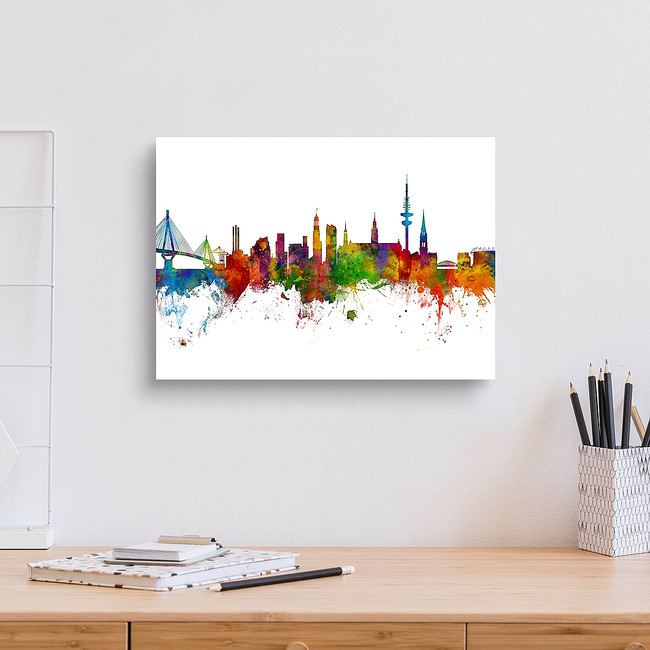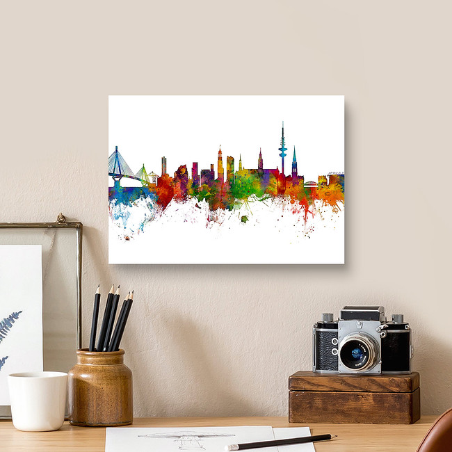 Watercolor art print of the skyline of Hamburg, Germany