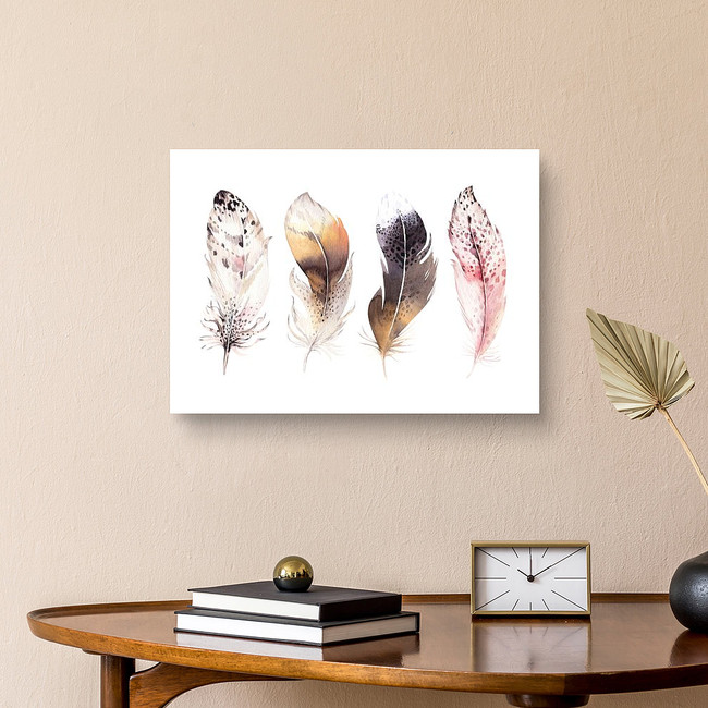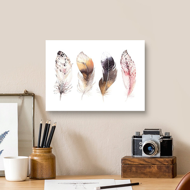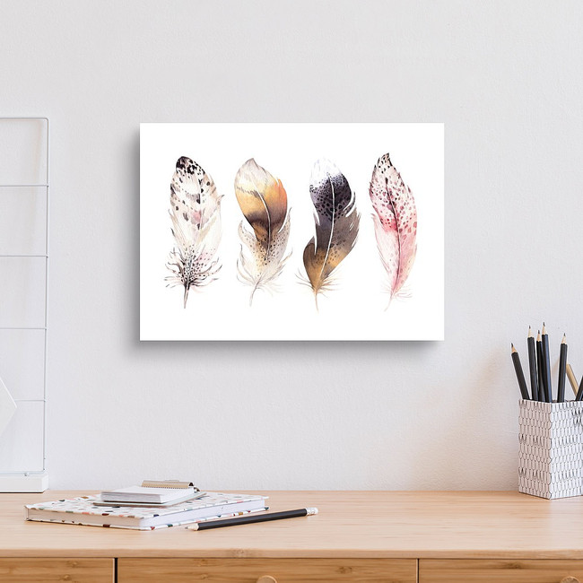 Hand Drawn Watercolor Paintings Vibrant Feather Set Canvas Print