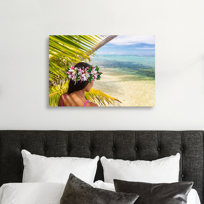 Hawaii Beach Woman Luau Dancer Relaxing Wearing Wreath Of Fresh... Canvas Print