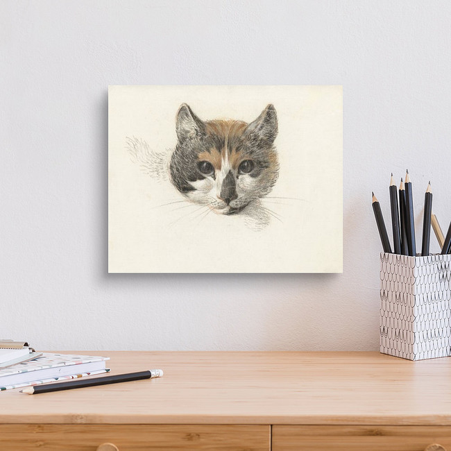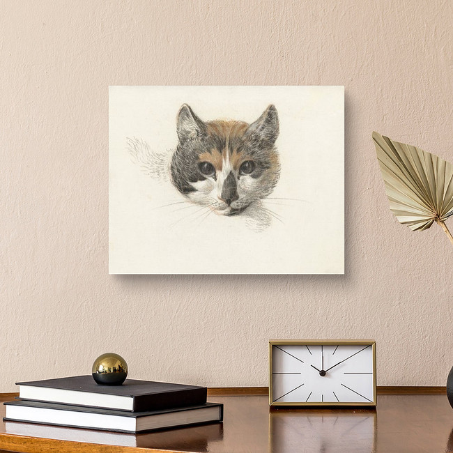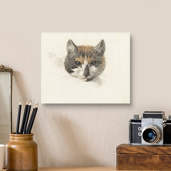 Head of a Calico Cat From the Front, with Open Eyes, by Jean Bernard, Dutch chalk and pencil drawing.