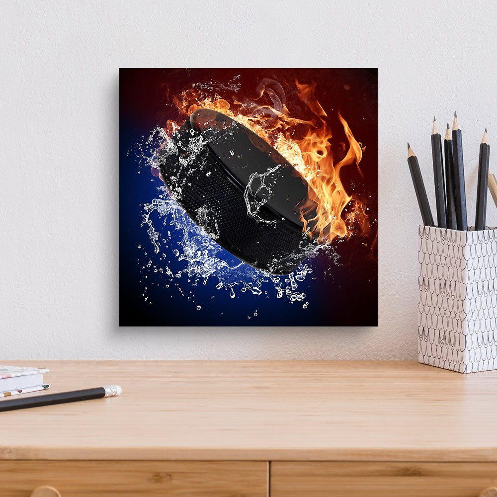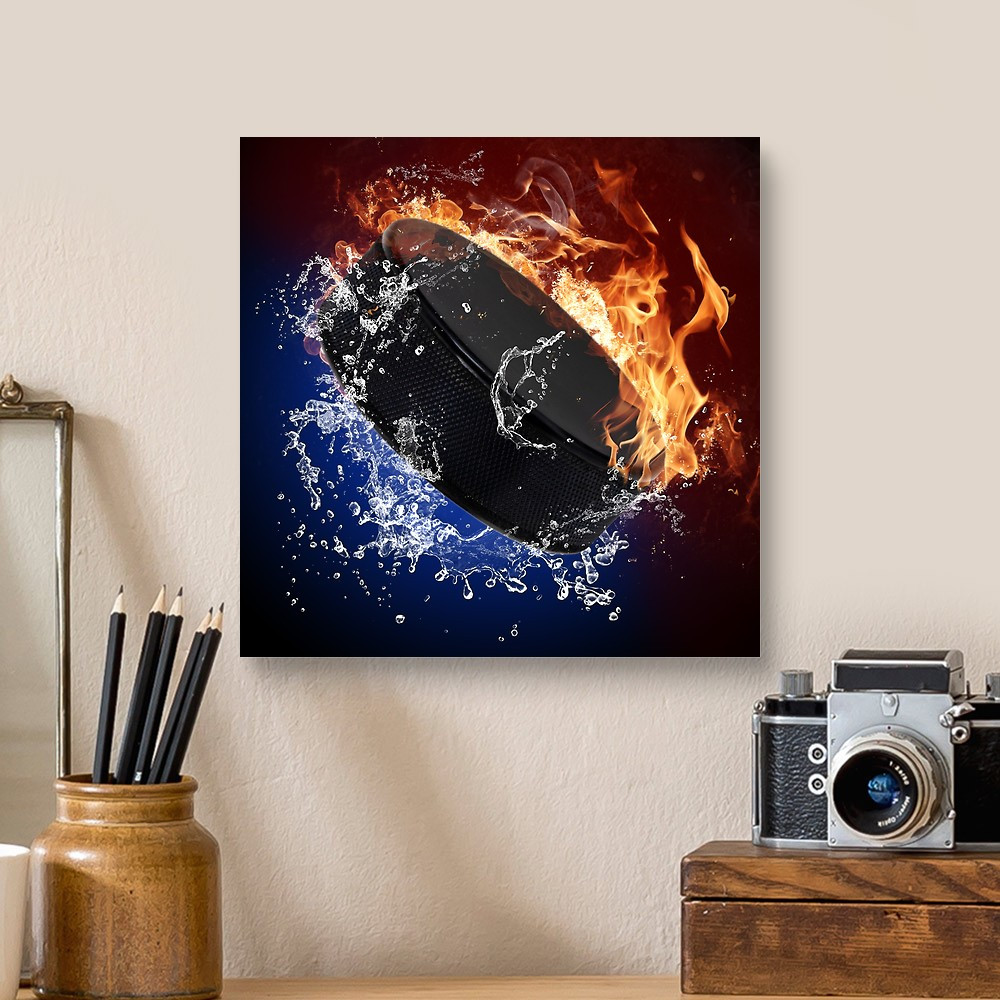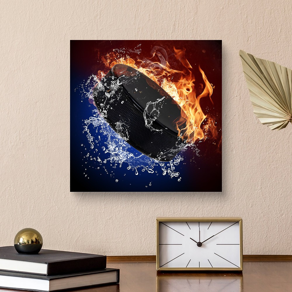 Hockey Puck In Fire Flames And Splashing Water Canvas Print