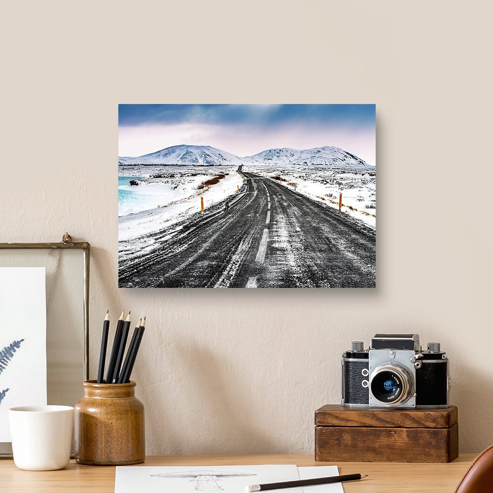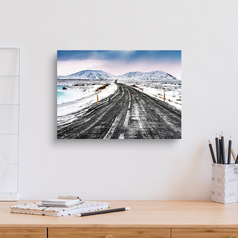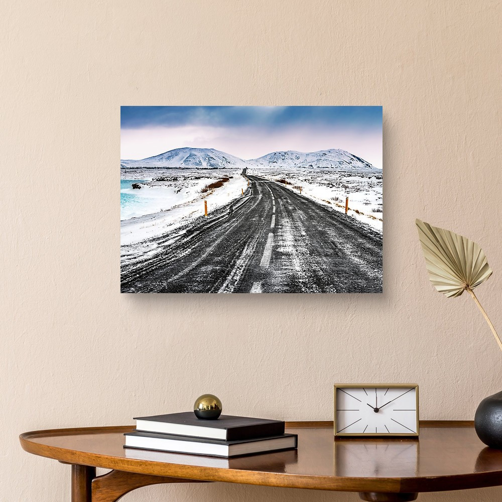 Iceland Snowy Landscape, Beautiful Winter Scene, Extreme Travel To Canvas Print