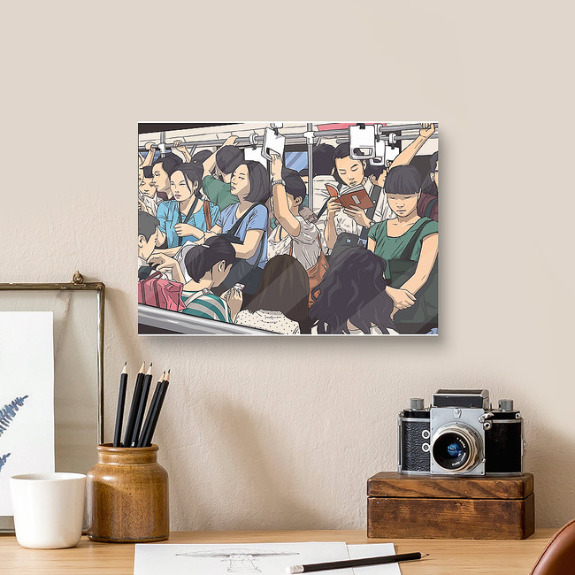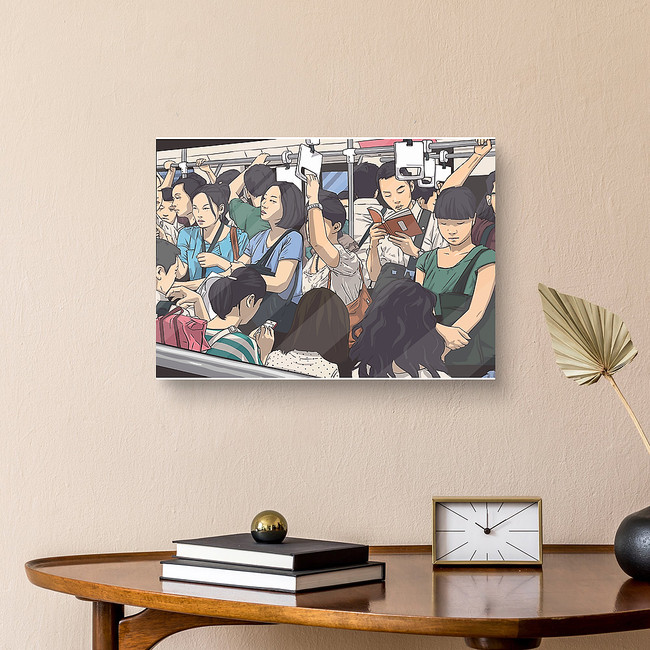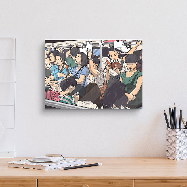 Illustration Of Crowded Metro, Subway Cart In Rush Hour Canvas Print