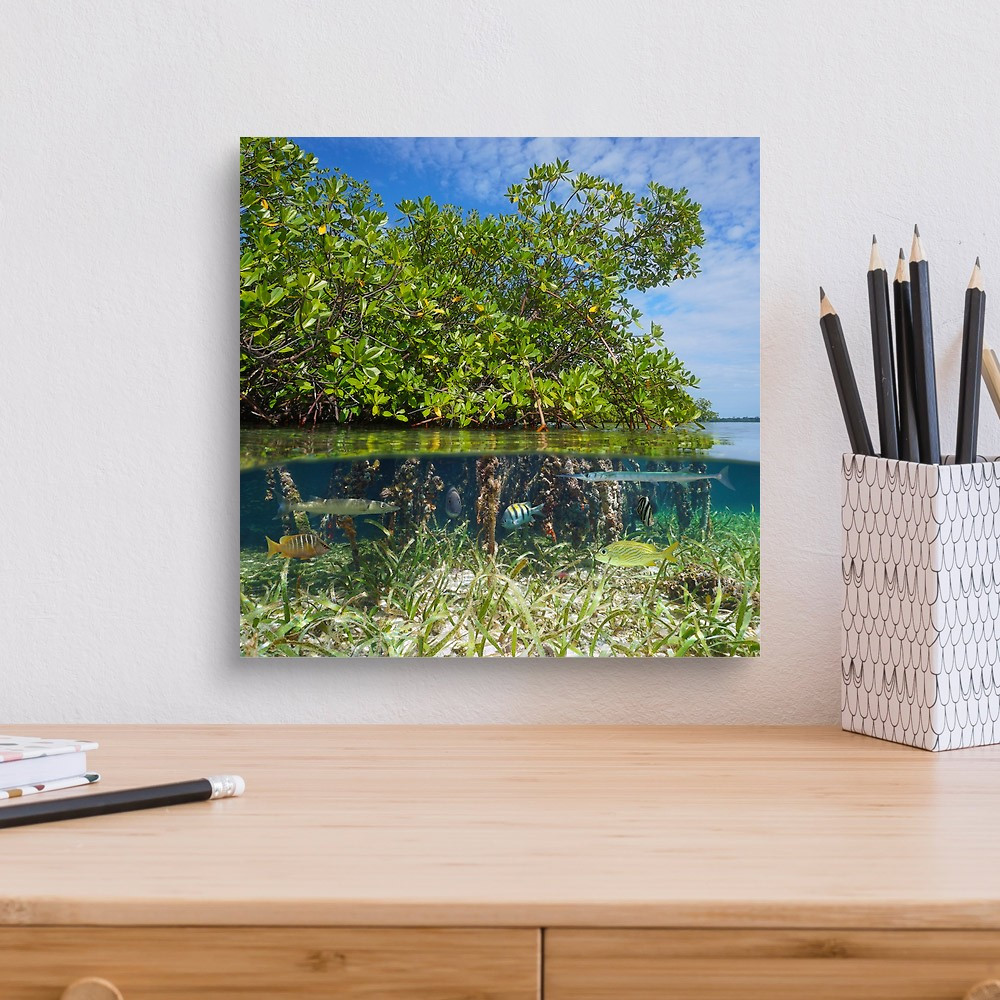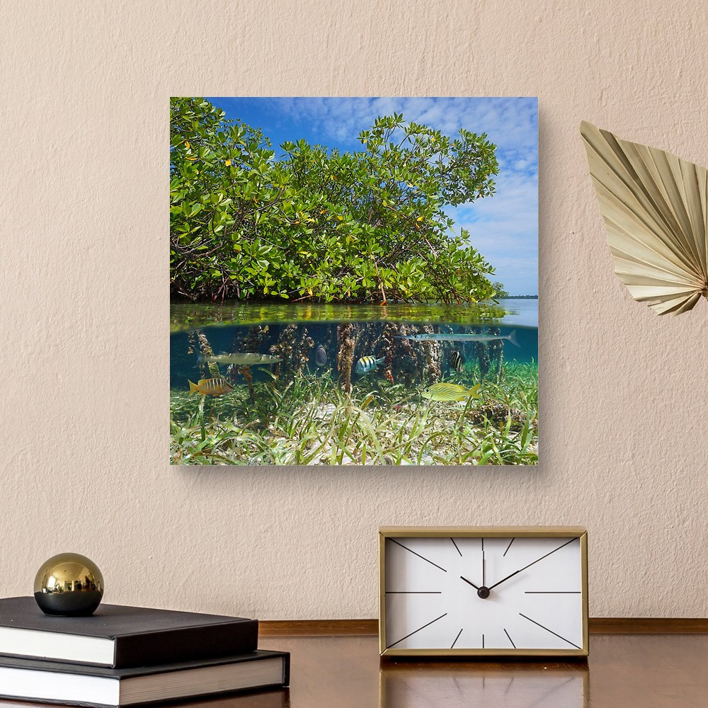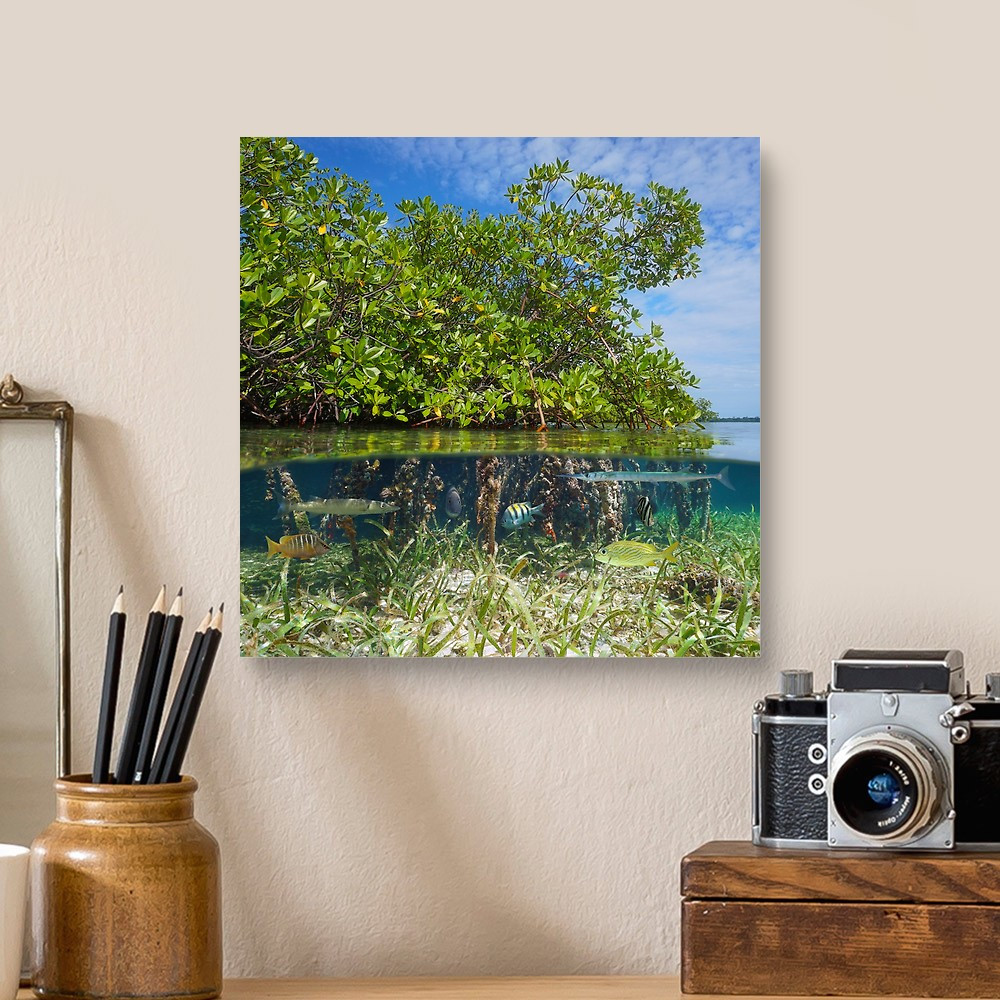 Mangrove With Tropical Fish, Split View Over And Under Water Surface Canvas Print