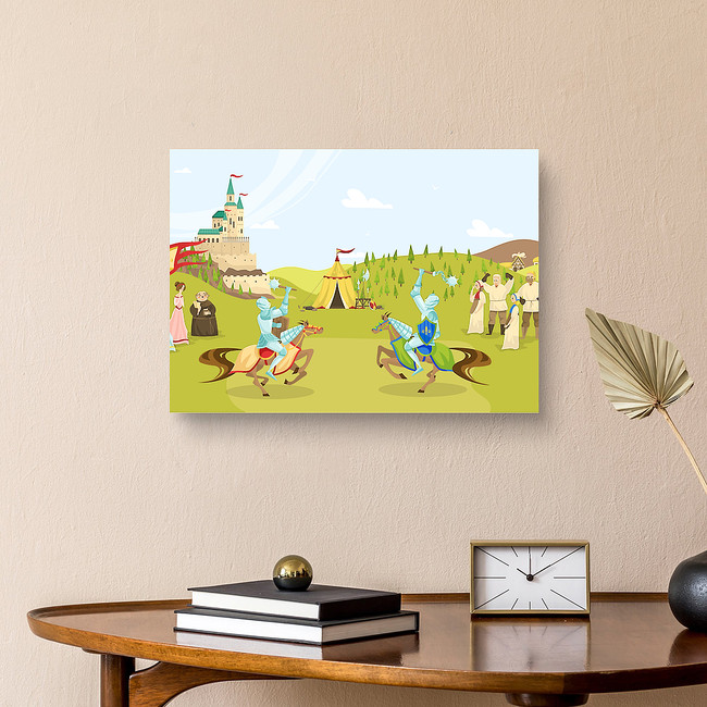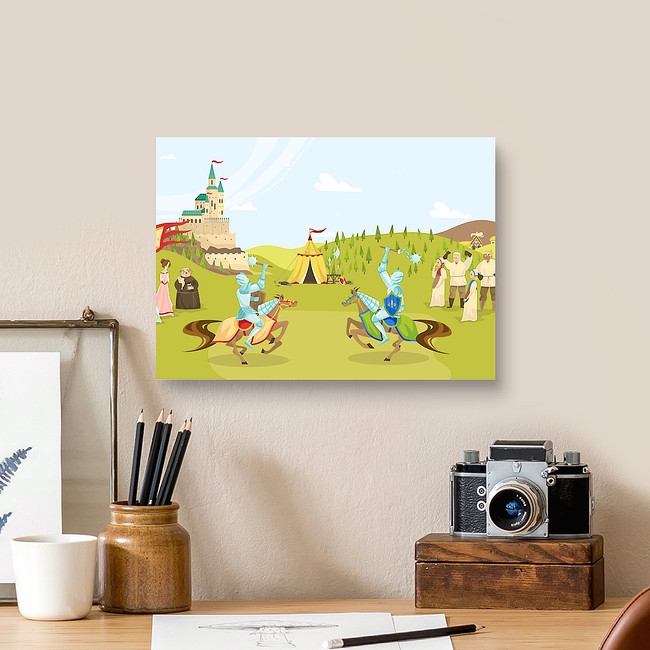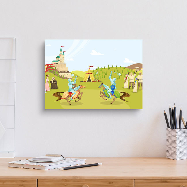 Medieval Epoch Tournament, Cartoon People Characters, Knights With... Canvas Print