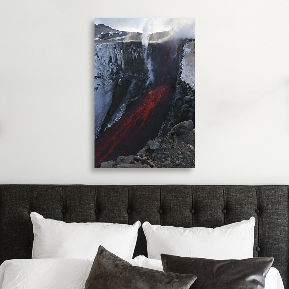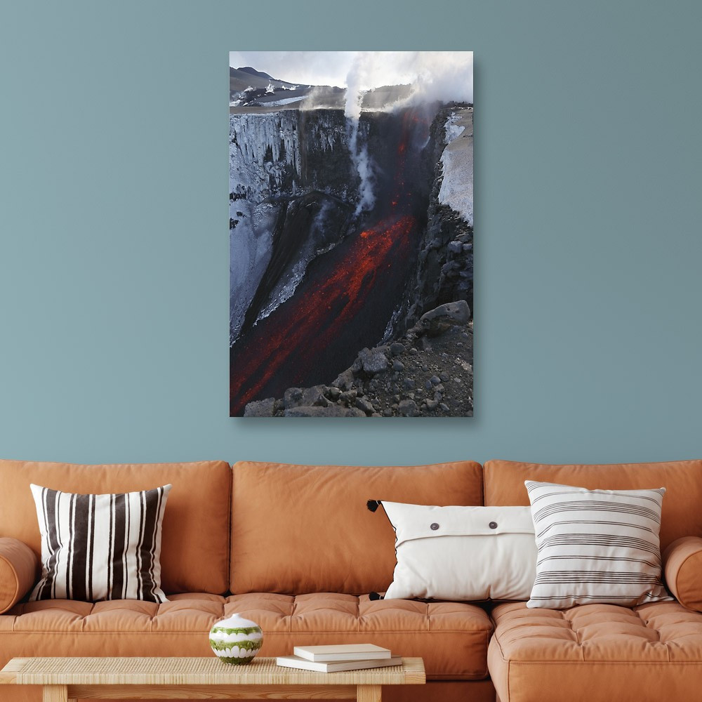 Molten Lava And Smoke Of Eyjafjallajokull Fimmvorduhals Iceland Canvas Print