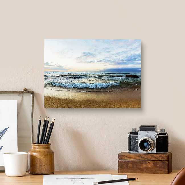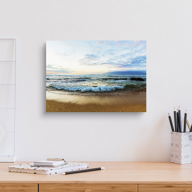 Ocean waves on Ka'anapali Beach at sunset with Island of Molokai on the horizon, Maui, Hawaii, USA Canvas Print