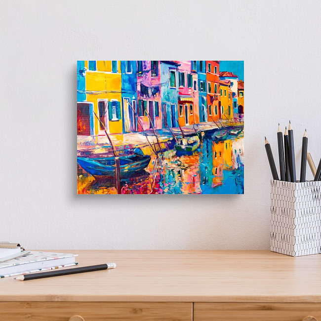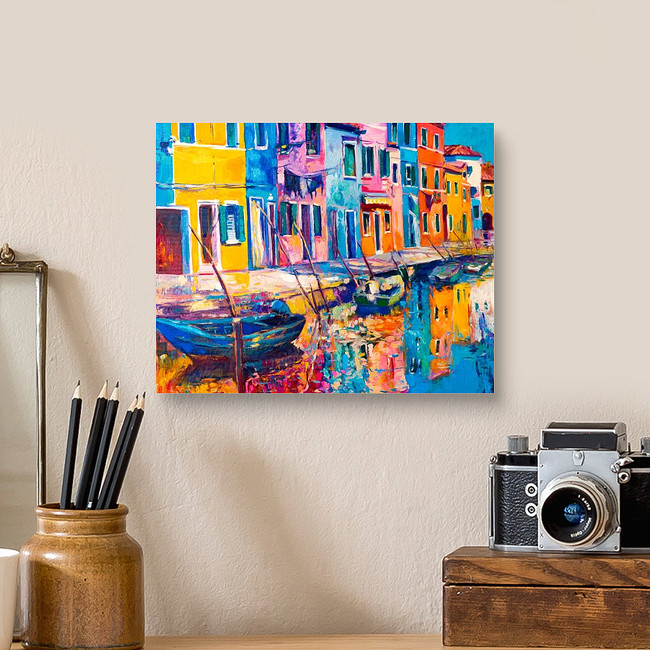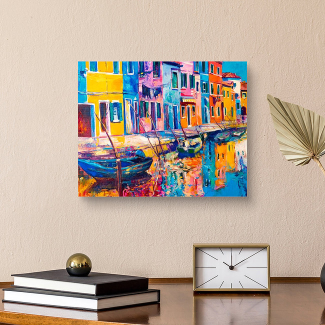 Oil Painting On Canvas. Colourful Houses. Modern Art Canvas Print