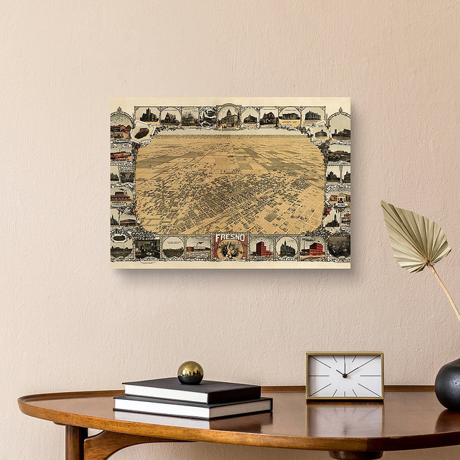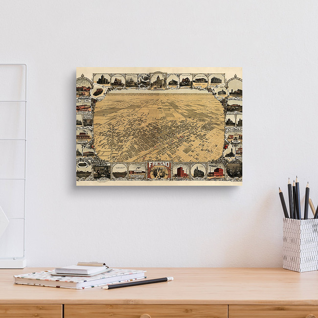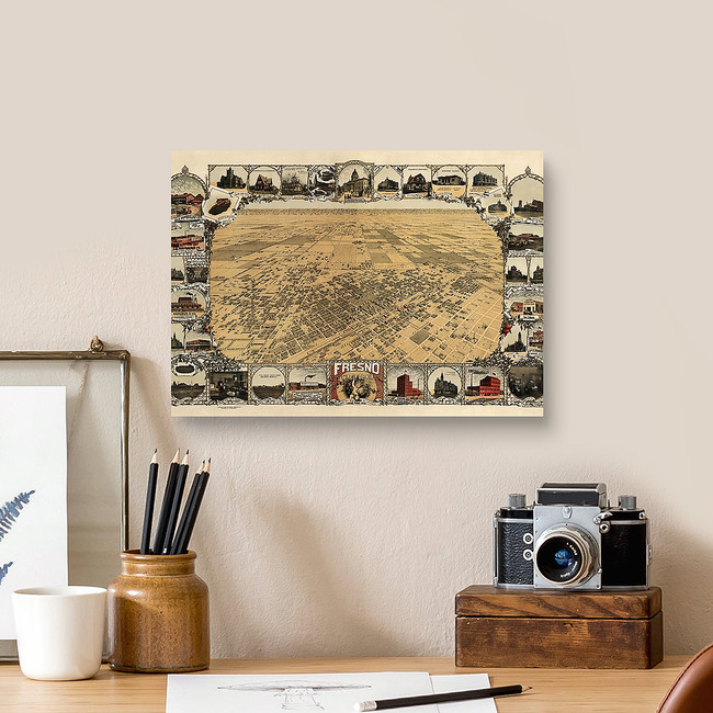 Old Bird's Eye View Map Of Fresno, California, 1901 Canvas Print