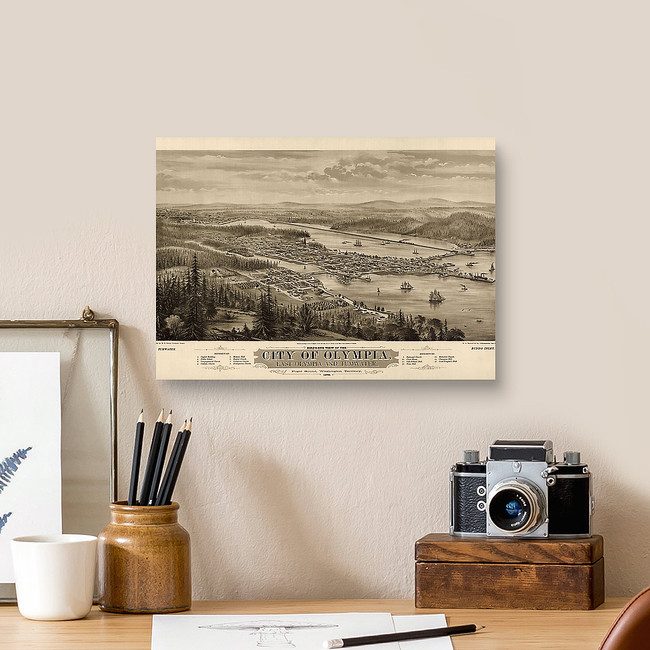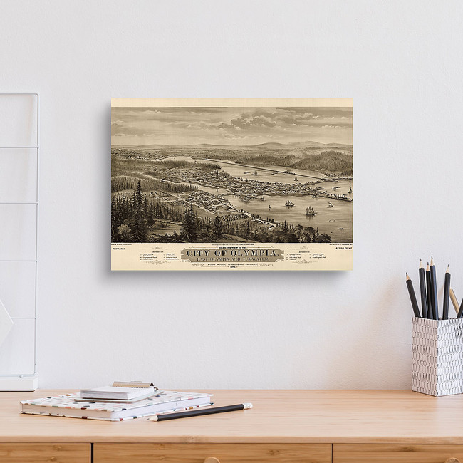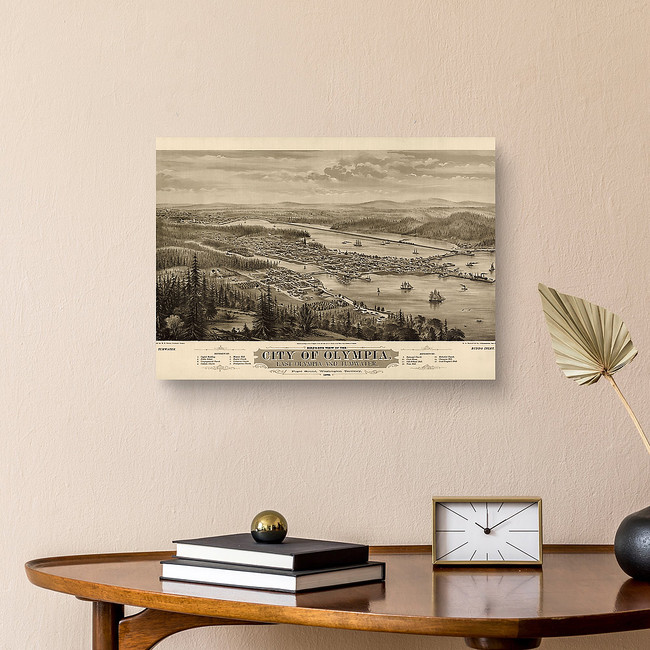 Old Bird's Eye View Map Of Olympia, Washington, 1879 Canvas Print