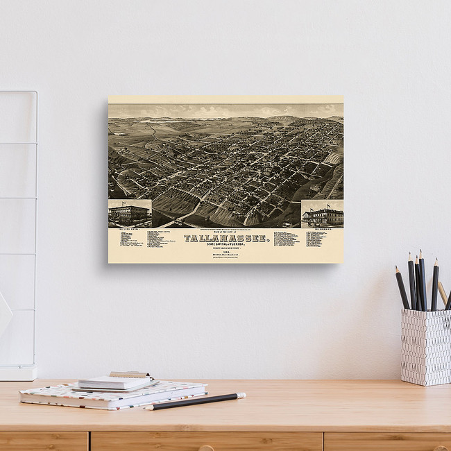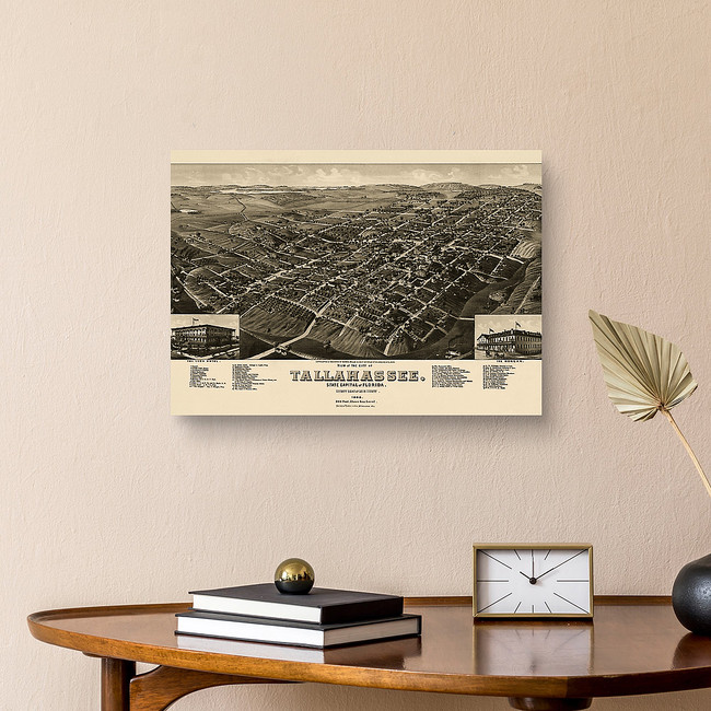 Old Bird's Eye View Map Of Tallahassee, Florida, 1885 Canvas Print