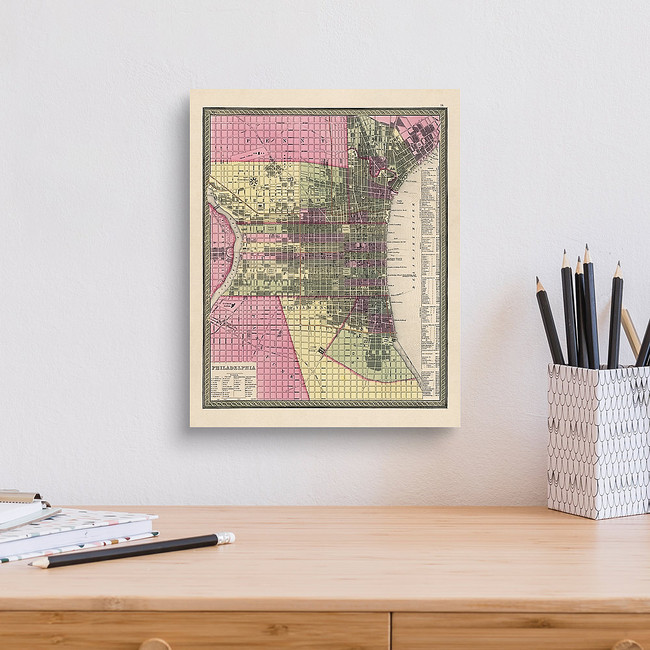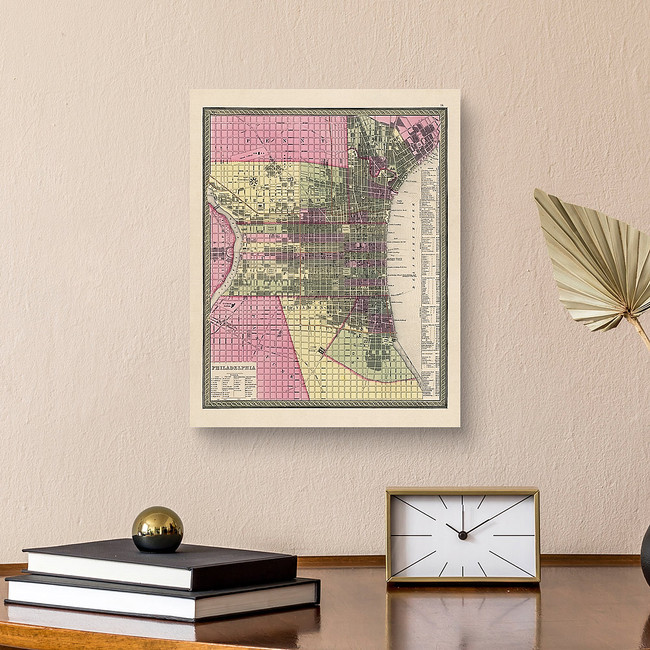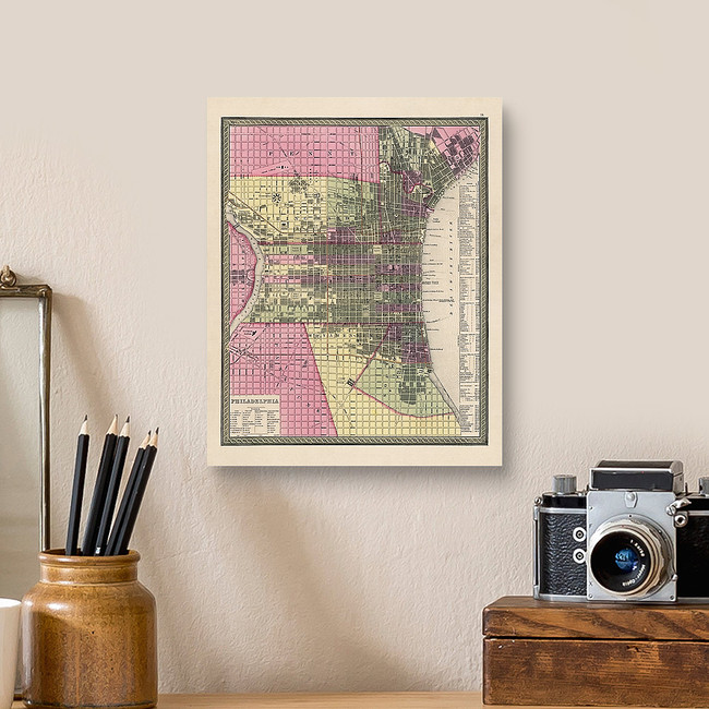 Old Map of Philadelphia, Pennsylvania, 1849 Canvas Print