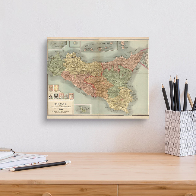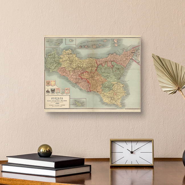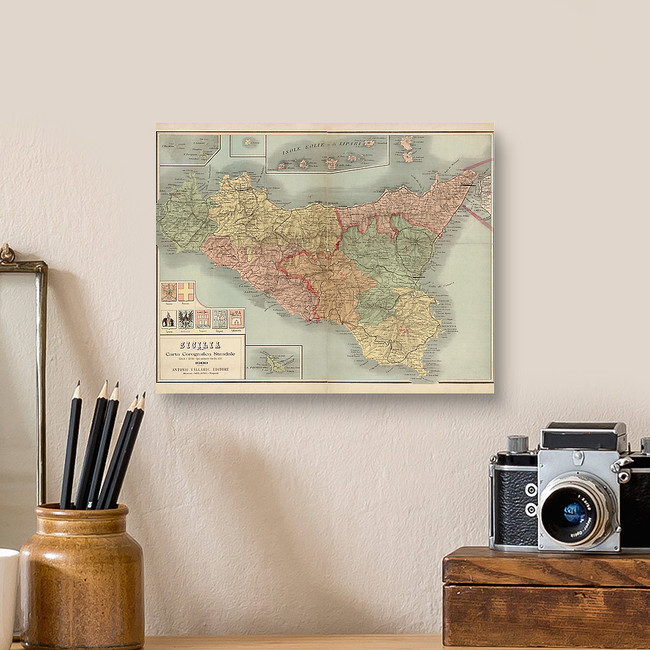 Old Map Of Sicily, Italy, 1900 Canvas Print