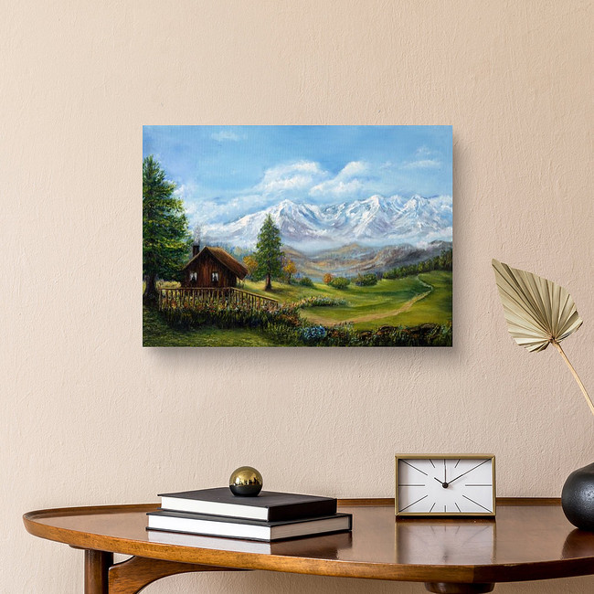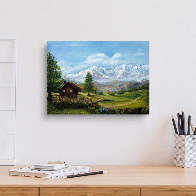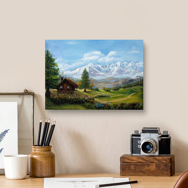 Original Oil Painting Of House Or Chalet In The Mountains On Canvas Canvas Print