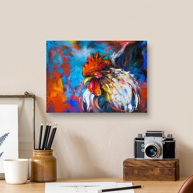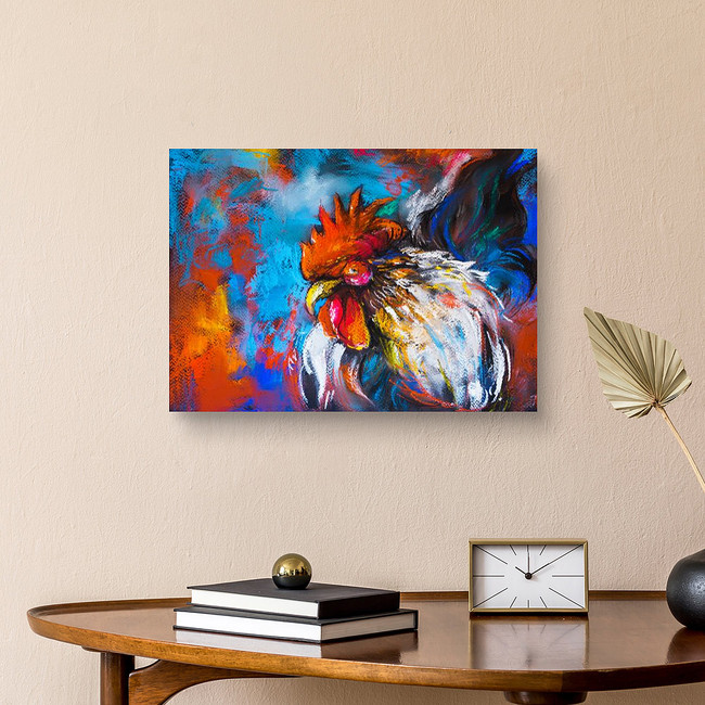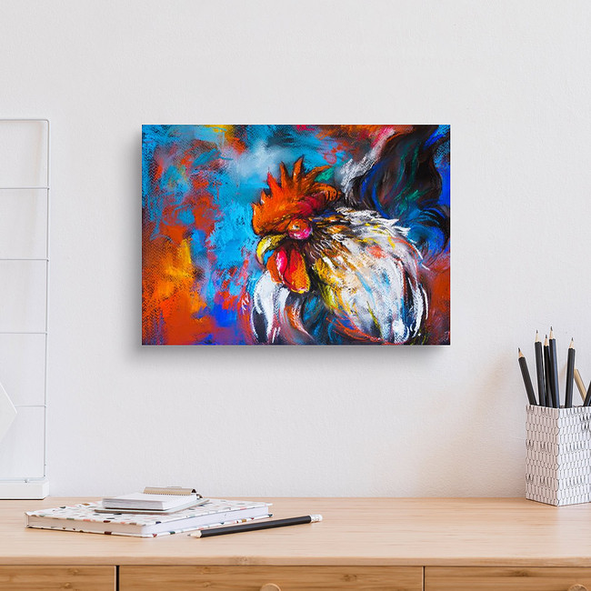 Original Pastel Painting Of A Colorful Rooster On A Cardboard Canvas Print