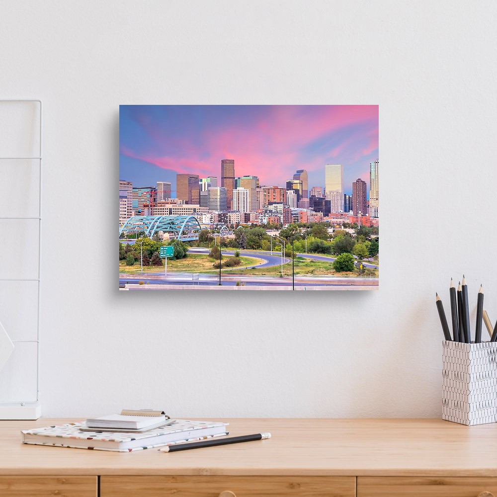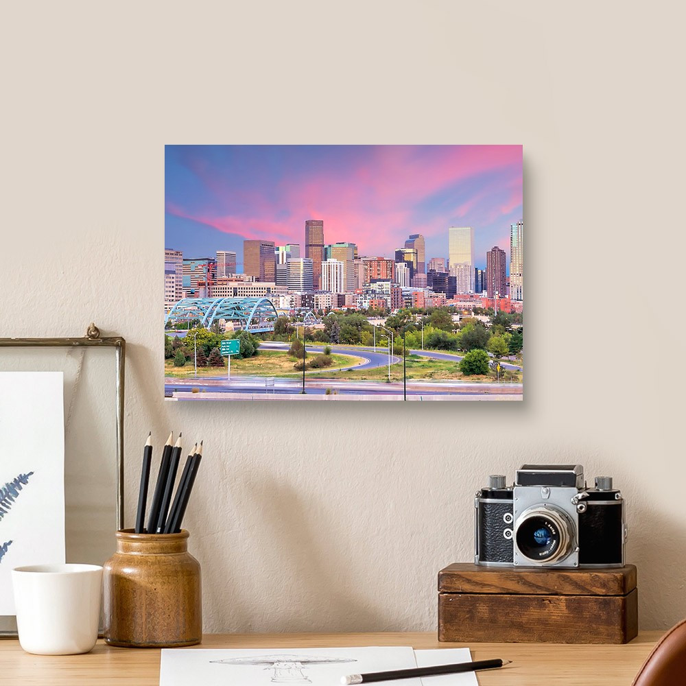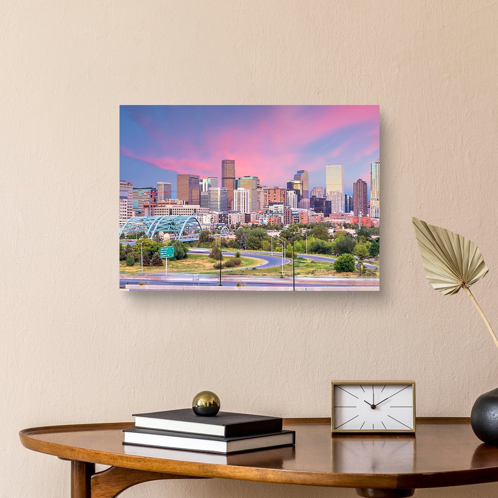 Panorama Of Denver Skyline Long Exposure At Twilight Canvas Print