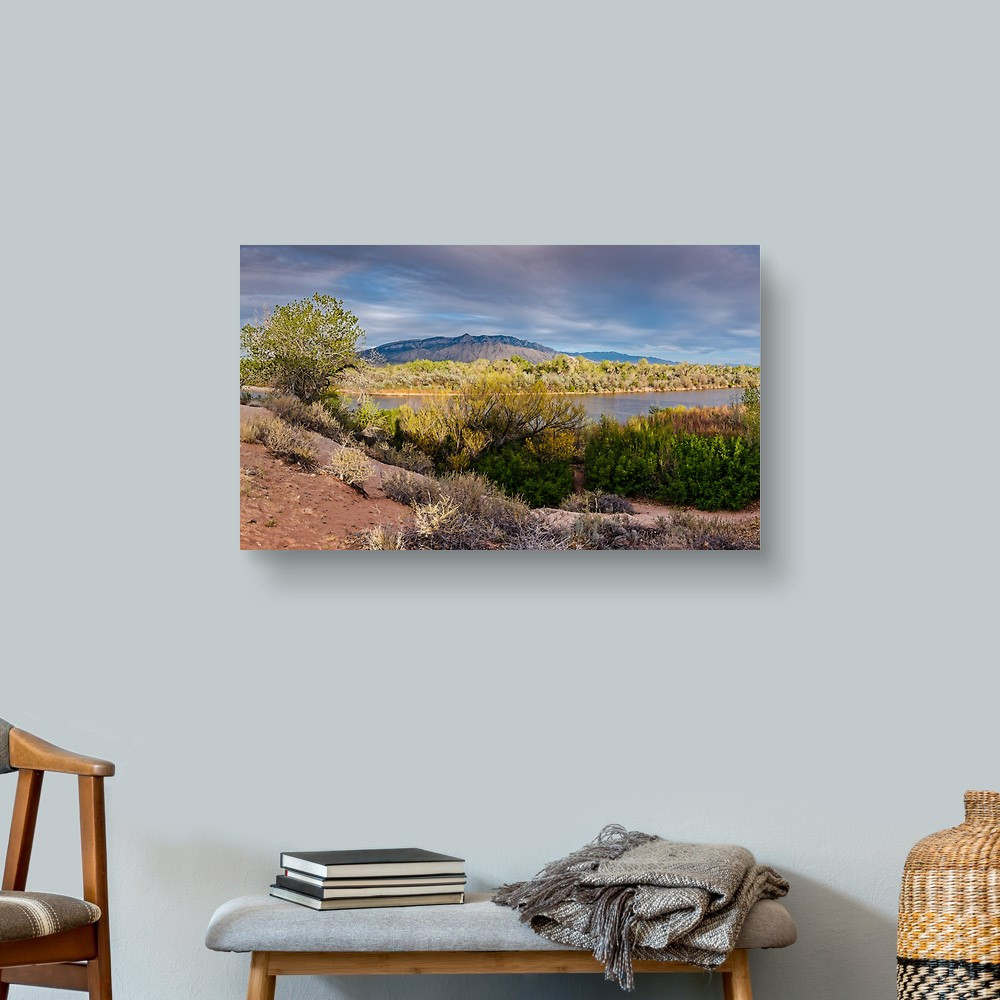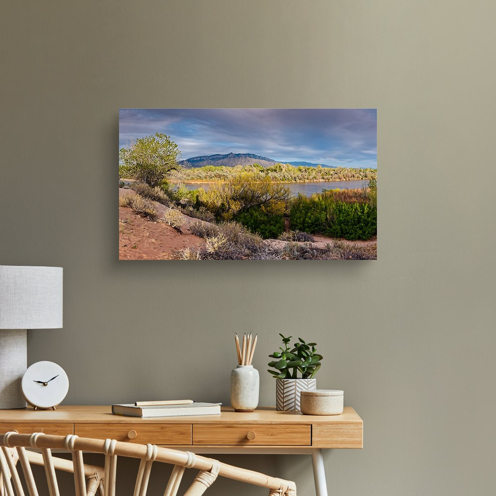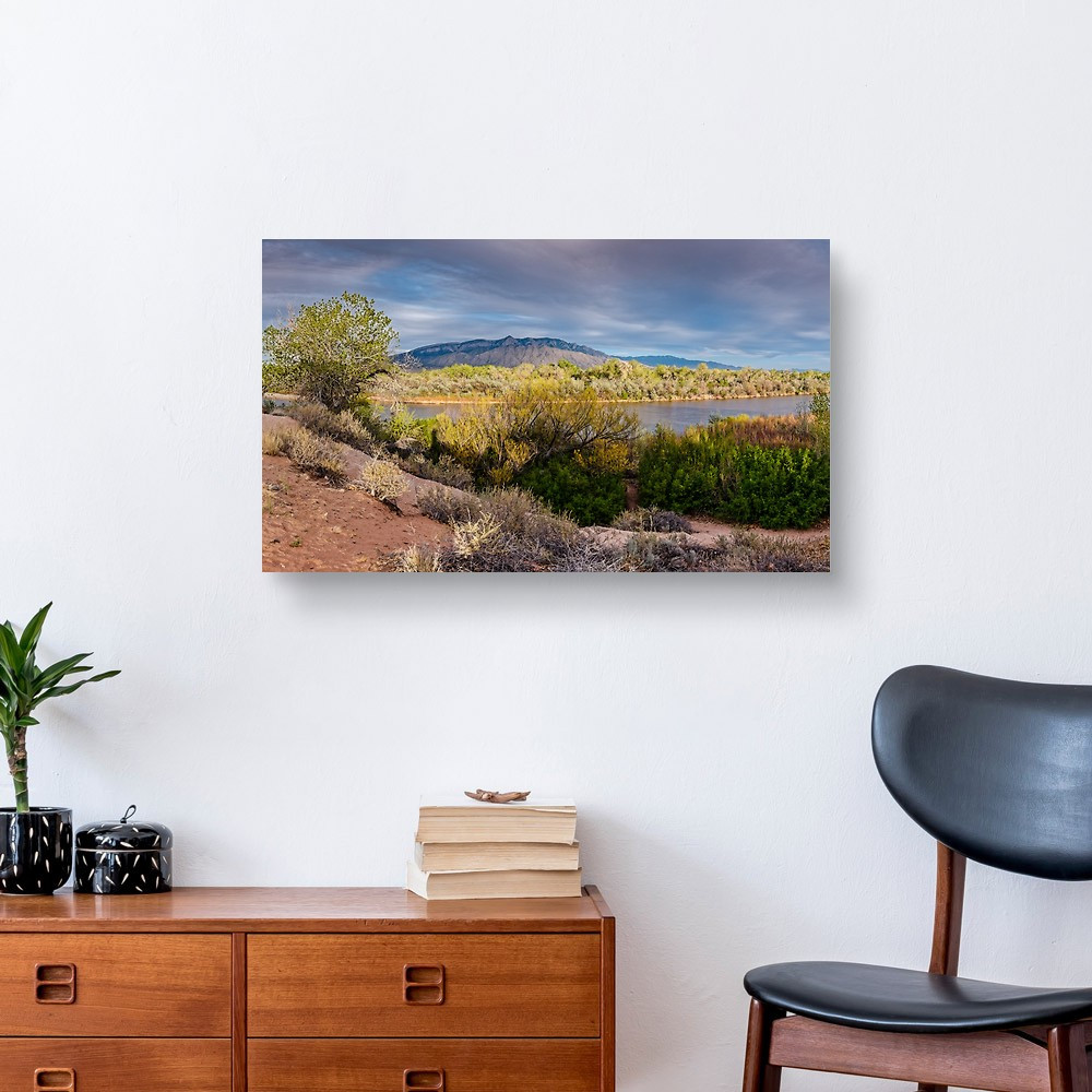 Panorama Of Sandia Mountains, Bosque, And Rio Grande From Rio Rancho Canvas Print
