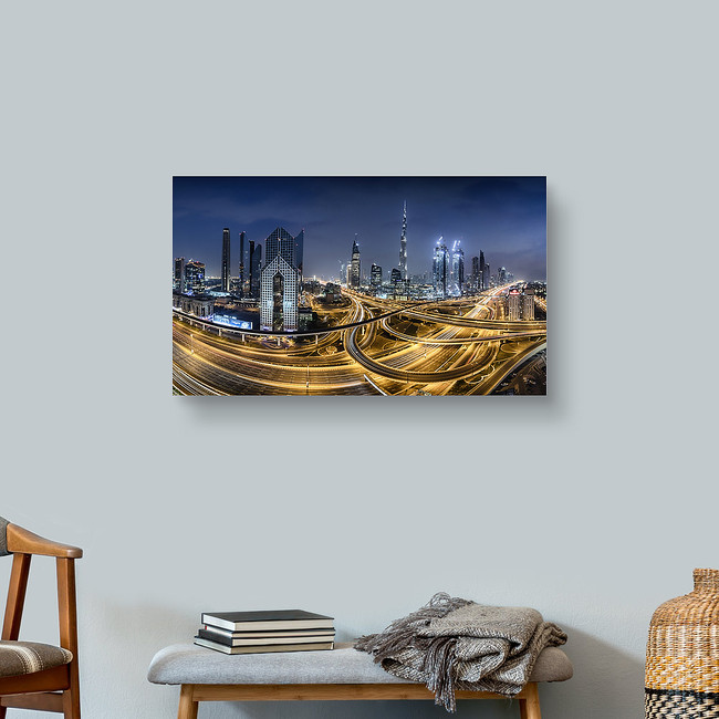 Panorama Of The Burj Khalifa And Massive Interchange Of Dubai Canvas Print