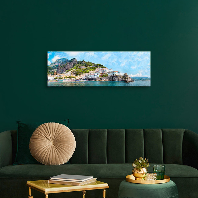 Panoramic View, Aerial Skyline Of Small Haven Of Amalfi Village With Canvas Print