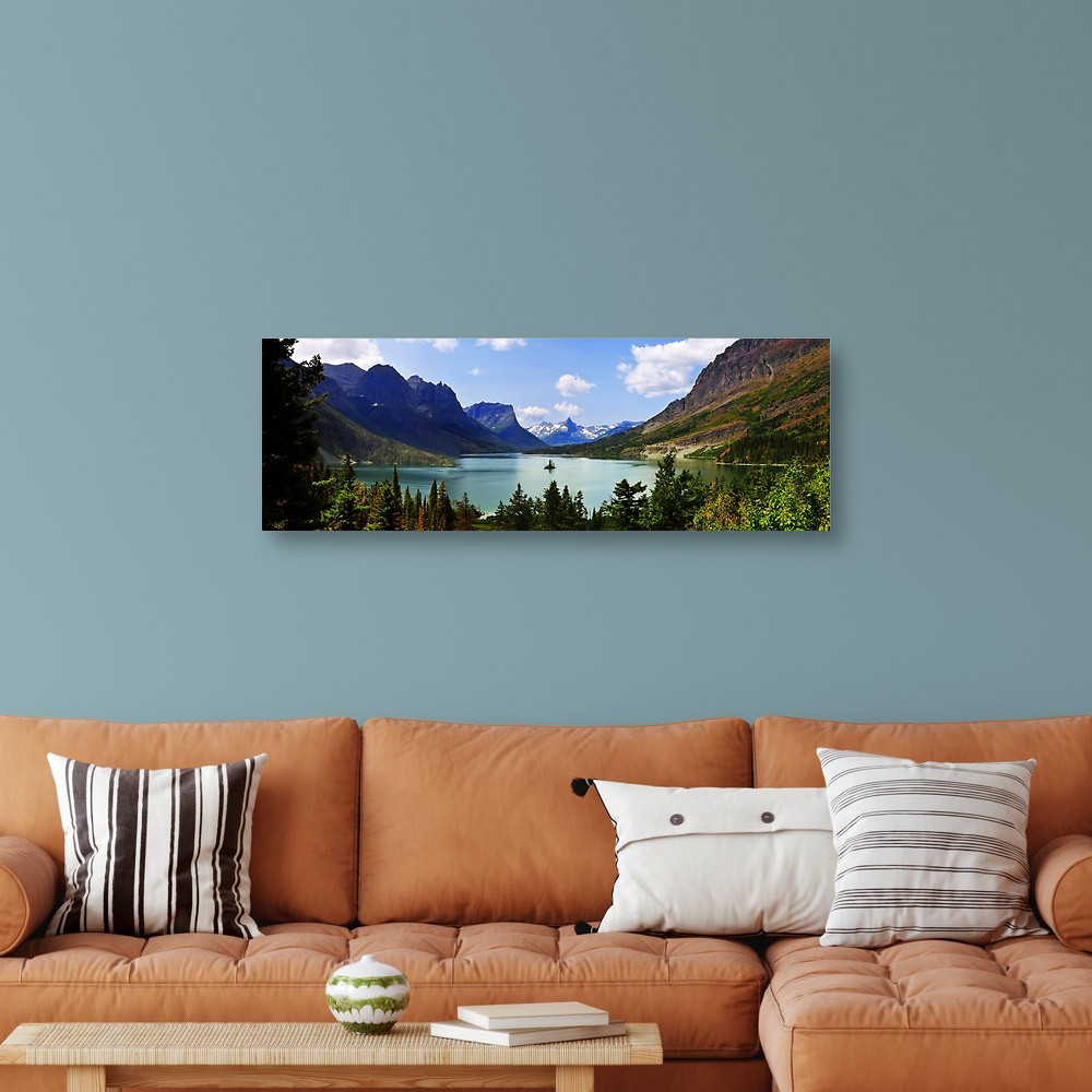 Panoramic View Of Saint Mary Lake, West Glacier 'going To Sun Road Canvas Print