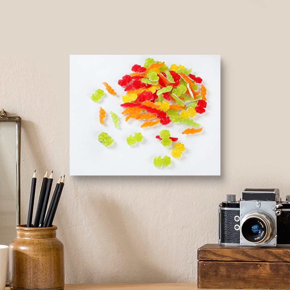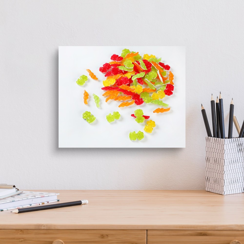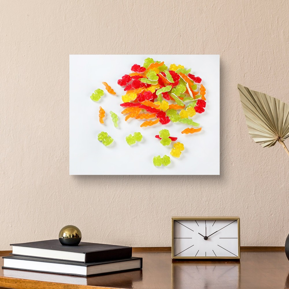 Pile Of Colorful Gummy Candies In The Shape Of Animals On White Canvas Print