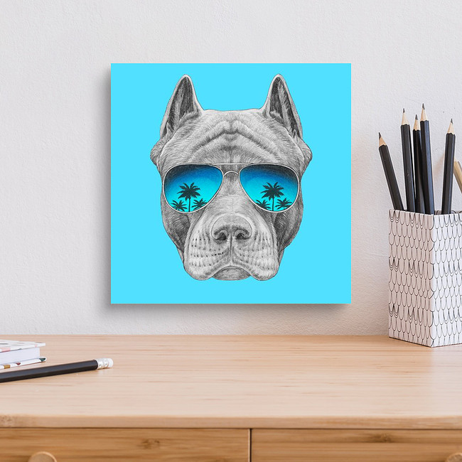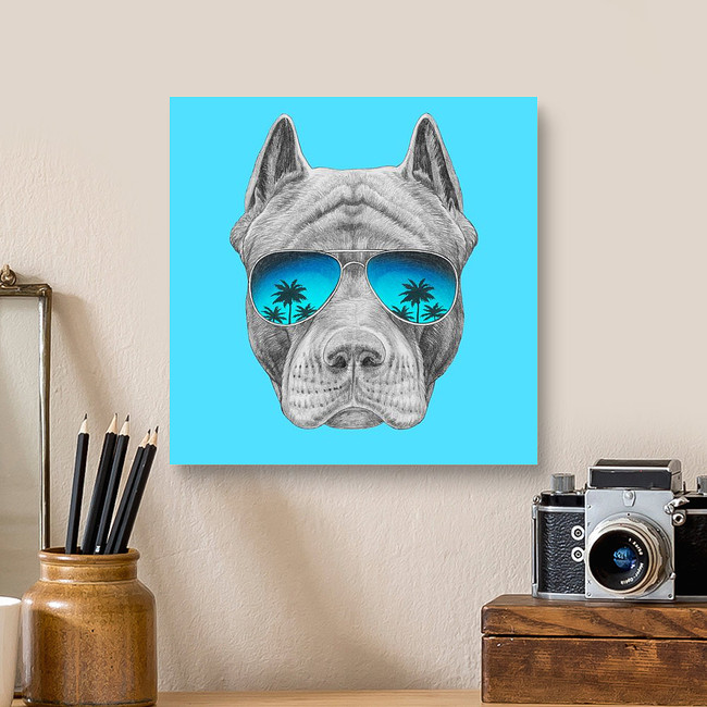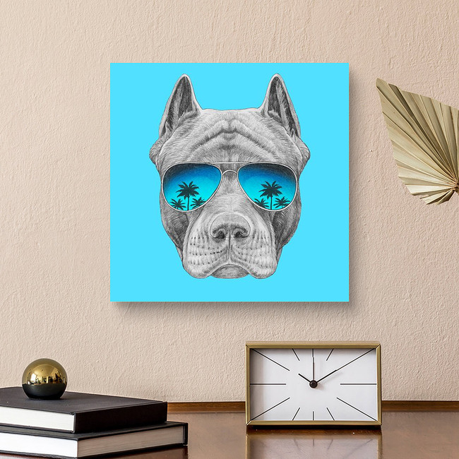 Portrait Of Pit Bull With Mirrored Sunglasses Canvas Print