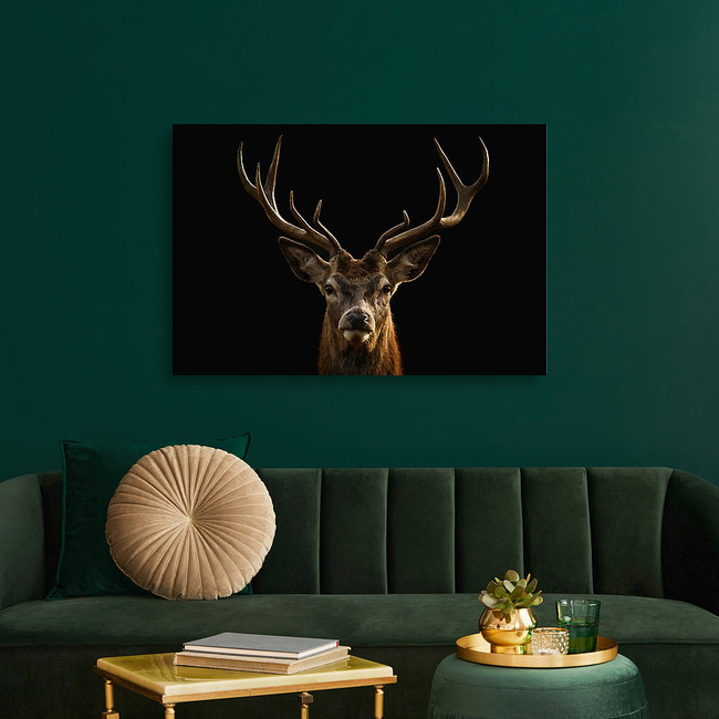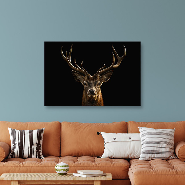 Red Deer Portrait On Black Background Canvas Print