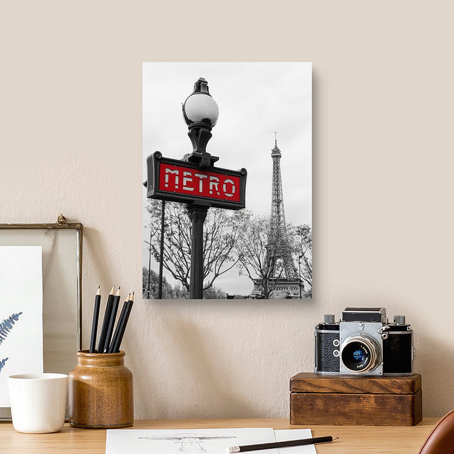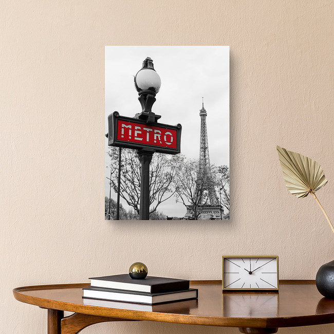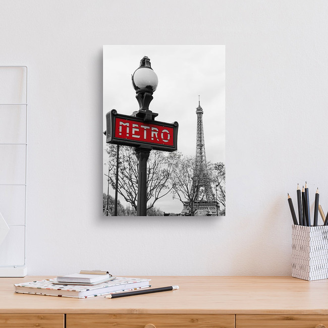 Red Paris Metro Subway Entry Sign With Eiffel Tower In The... Canvas Print