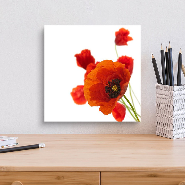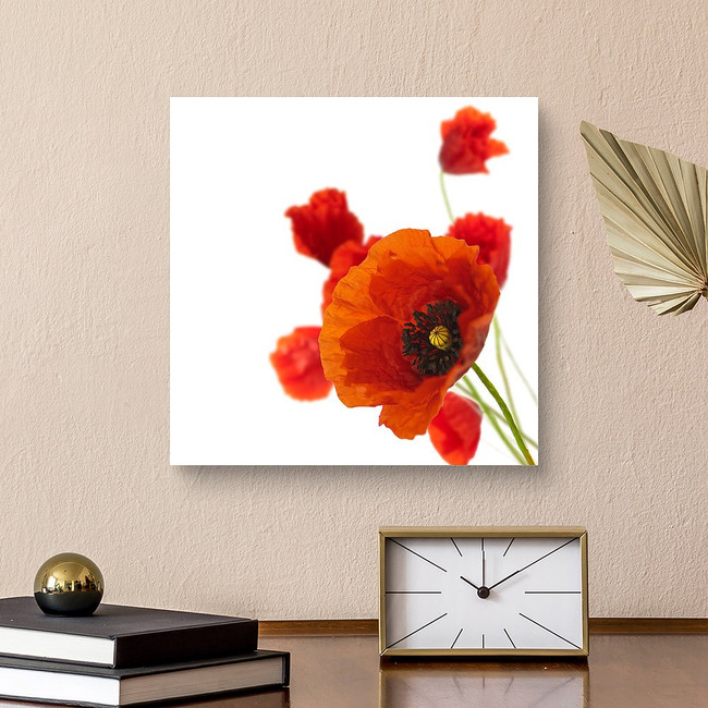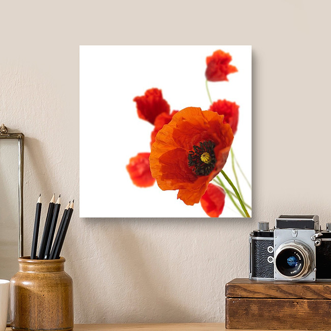 Red Poppies Isolated On A White Background In The Corner Of A Page... Canvas Print