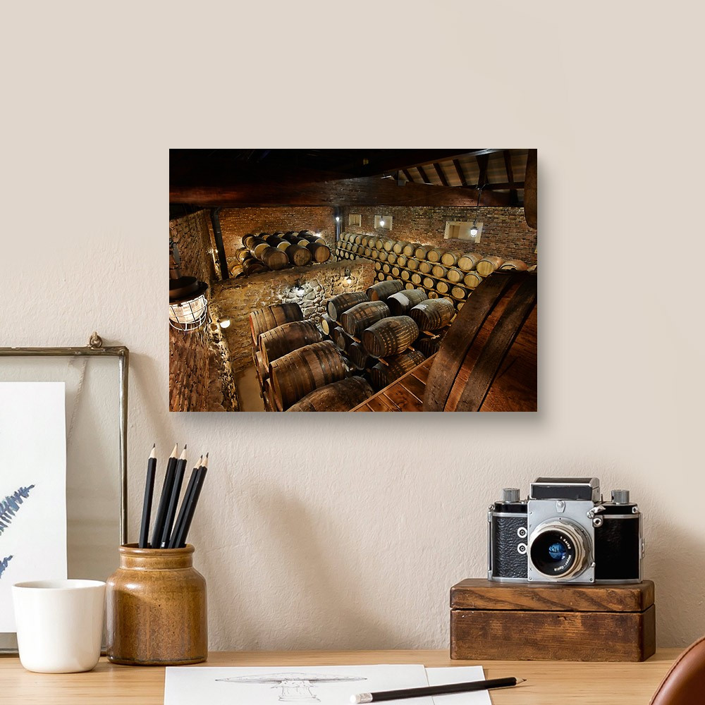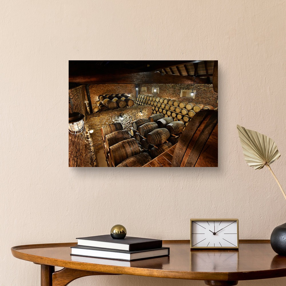 Rows Of Alcohol Barrels In Stock Canvas Print