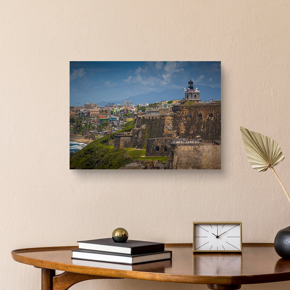Scenic View Of Historic Colorful Puerto Rico City In Distance With Canvas Print