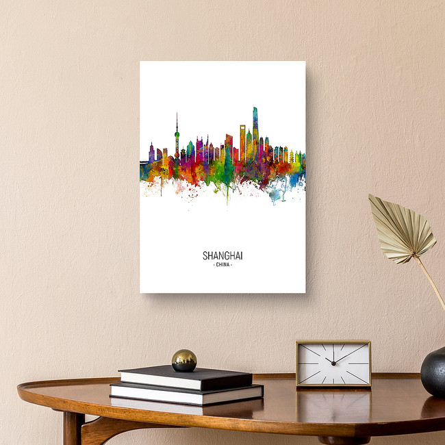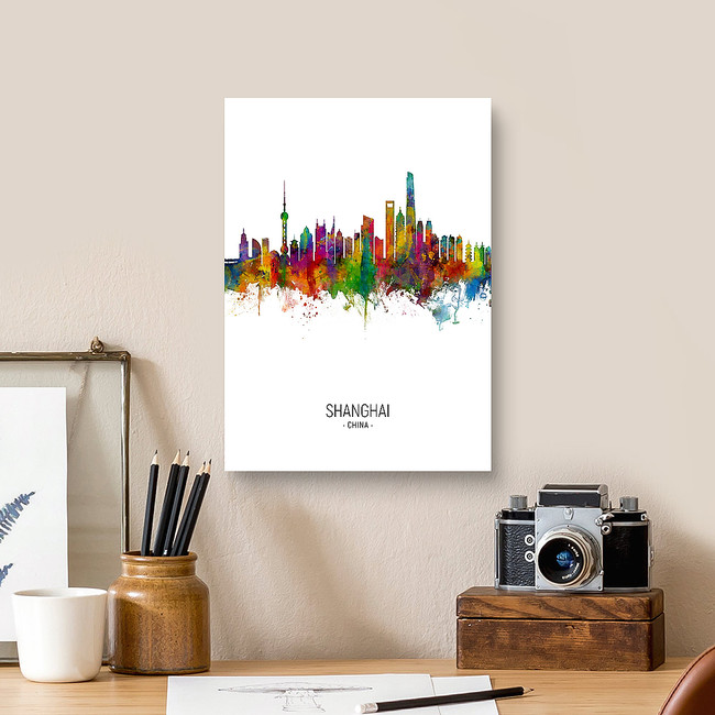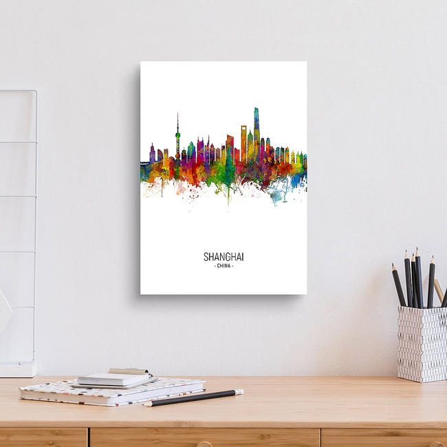 Watercolor art print of the skyline of Shanghai, China