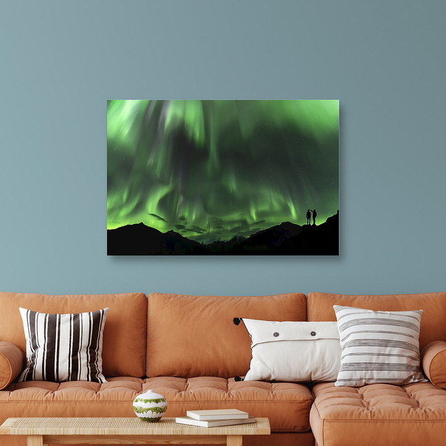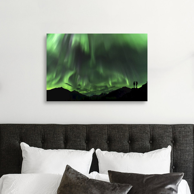 Silhouetted people with a Northern Lights display, Alaska, USA Canvas Print