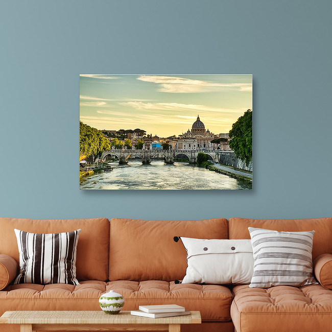 Your canvas art print will arrive ready-to-hang. Each kiln-dried pine frame is meticulously fitted with high-quality hardware designed to protect and secure your canvas. Our craftspeople select either a metal sawtooth hangar or a plastic-coated stainless steel hanging wire, depending on the size. Larger canvas prints also come with corner braces and a middle stabilizer for added protection.
