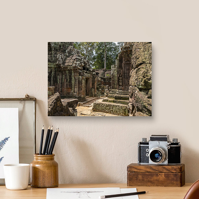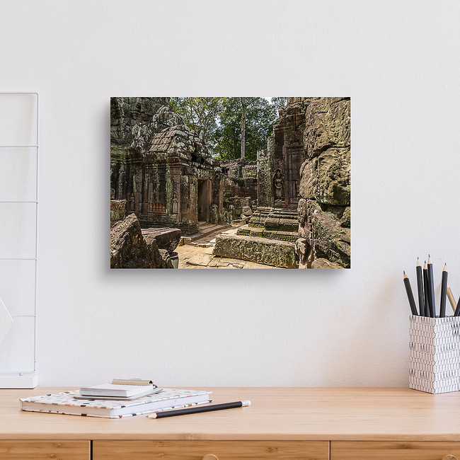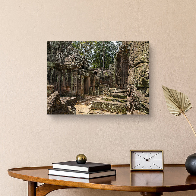 Stone portico opposite temple in courtyard, Ta Som, Angkor Wat, Cambodia Canvas Print