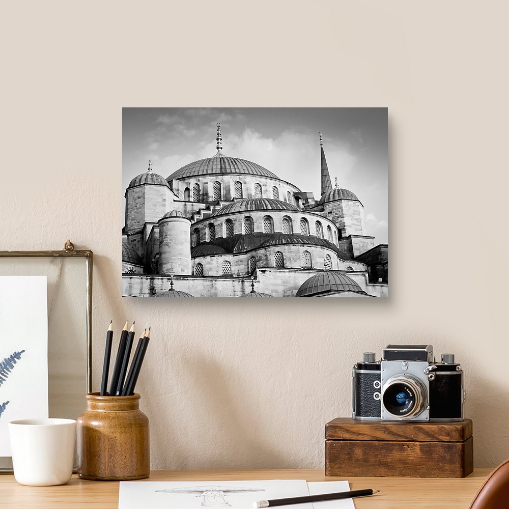 Sultan Ahmed Mosque Or Blue Mosque In Istanbul In Black And White Canvas Print