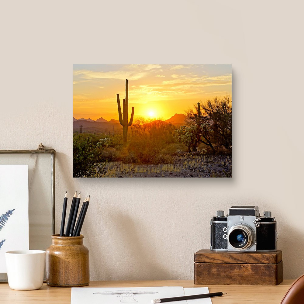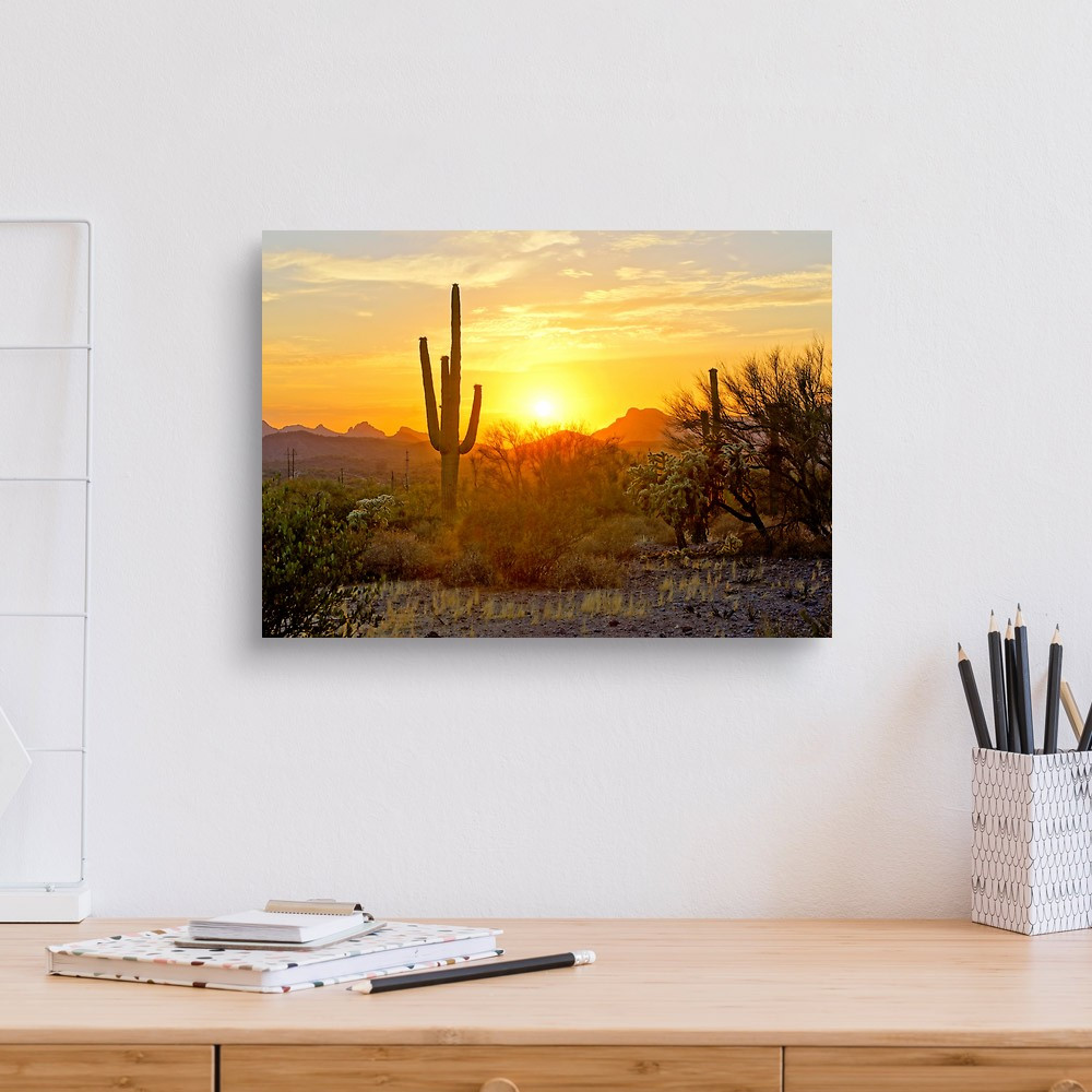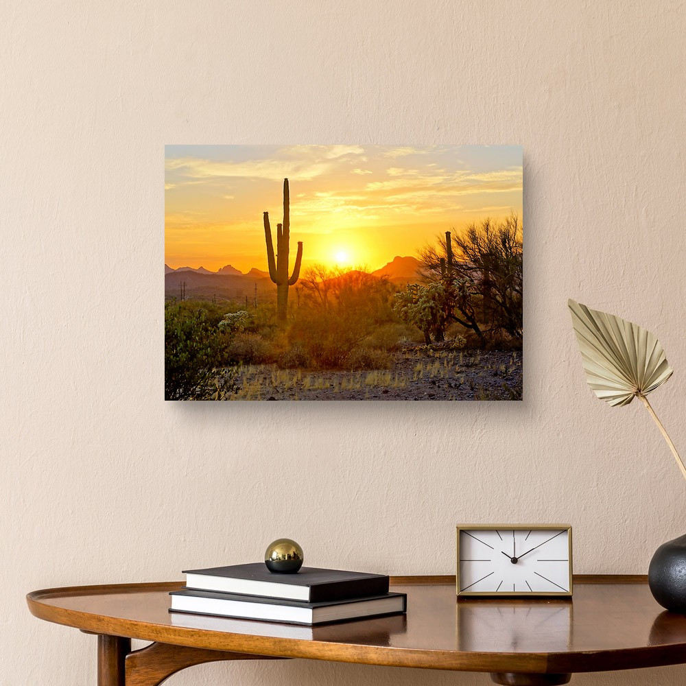 Sunset View Of The Arizona Desert With Saguaro Cacti And Mountains Canvas Print