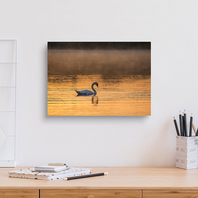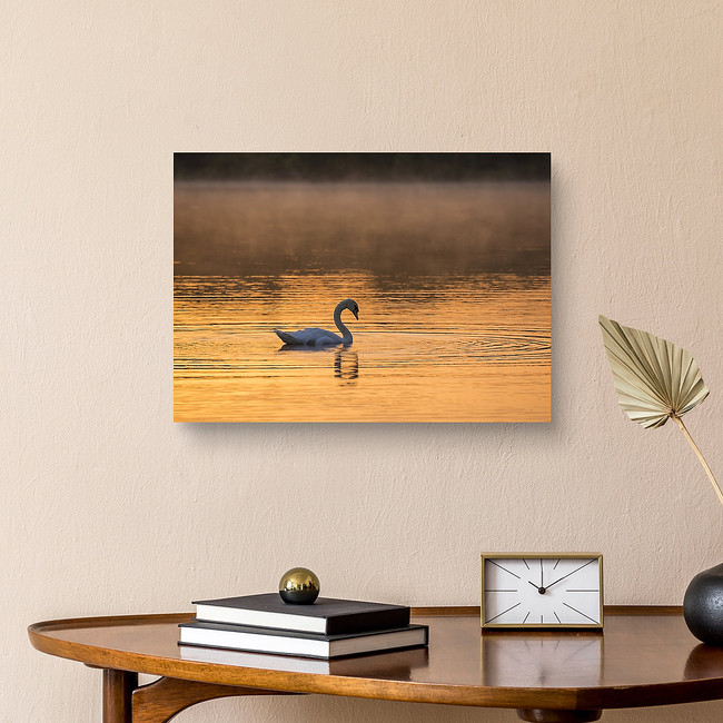 Swan In Fog And Sunrise At Gougane Barra, Cork, Ireland Canvas Print