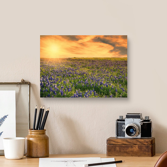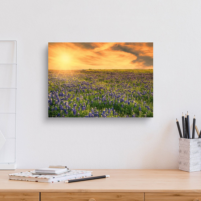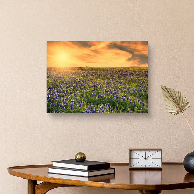 Texas Bluebonnet Field Blooming In The Spring At Sunset Canvas Print
