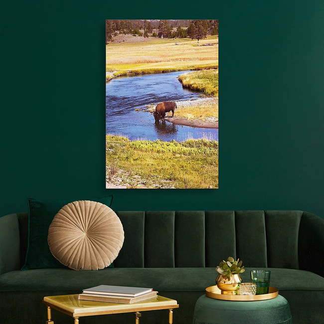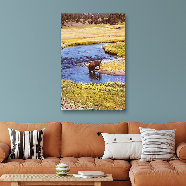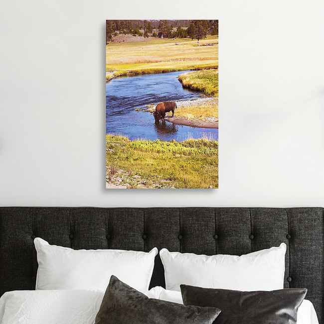 The Bison Drinks Water In Well-known Yellowstone National Park Canvas Print