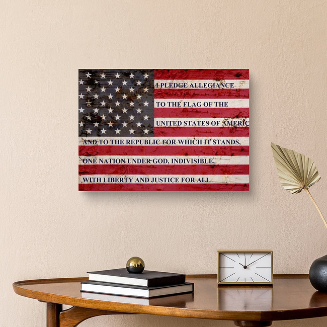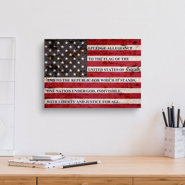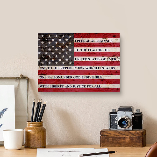 The Pledge Of Allegiance Written On A Weathered United States Of... Canvas Print