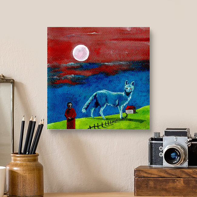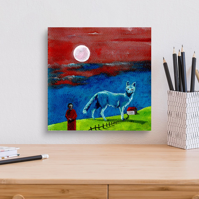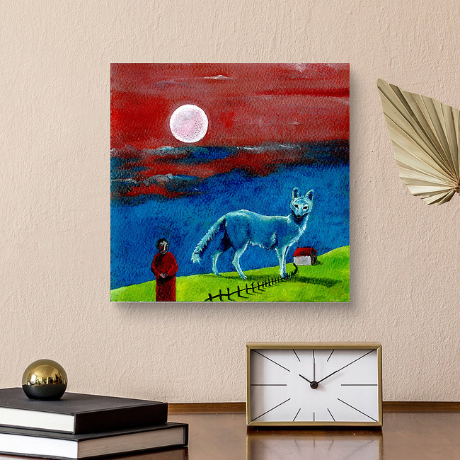 The Wolf And The Moon, 2004, (oil on paper) Canvas Print