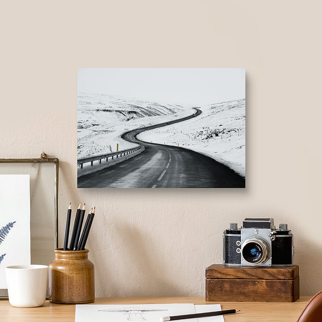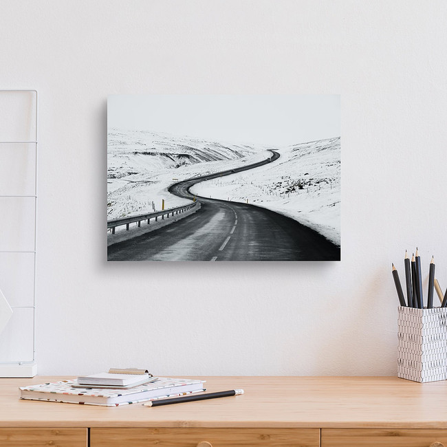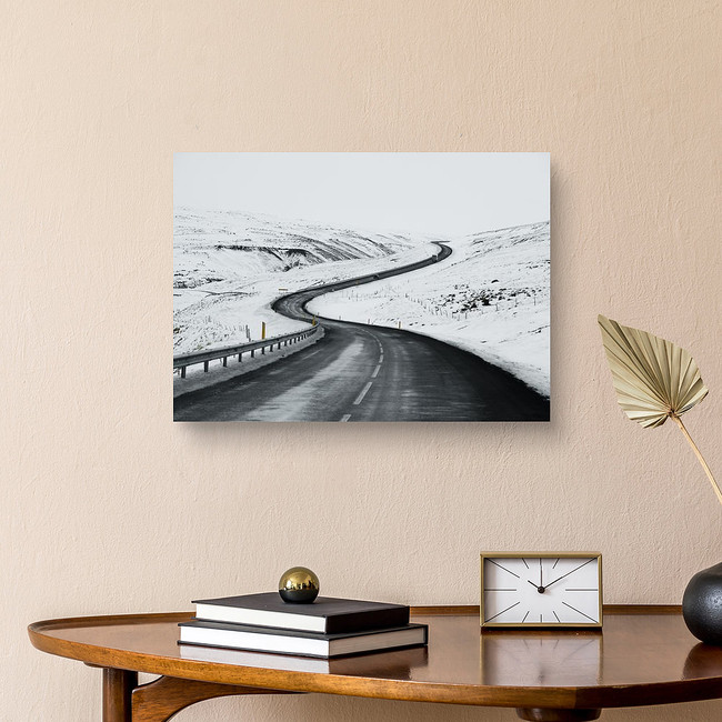 Uphill Road Landscape In Winter At Iceland Canvas Print