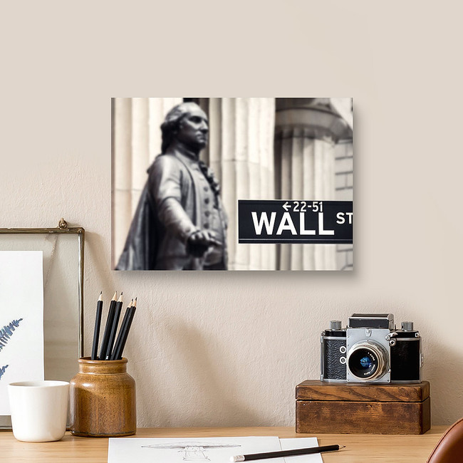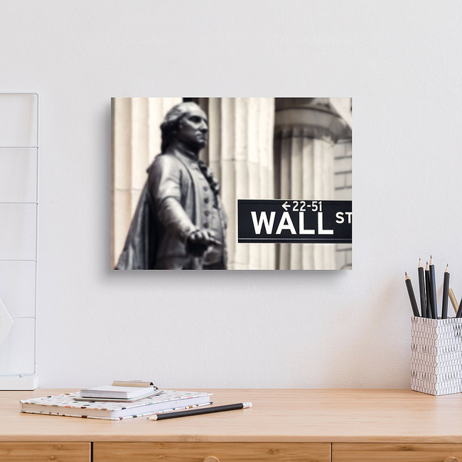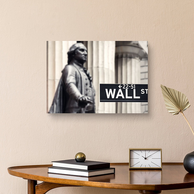 Wall Street Sign With The Statue Of George Washington And The Federal Canvas Print