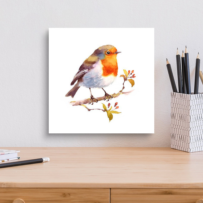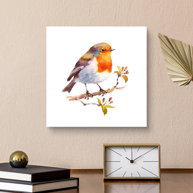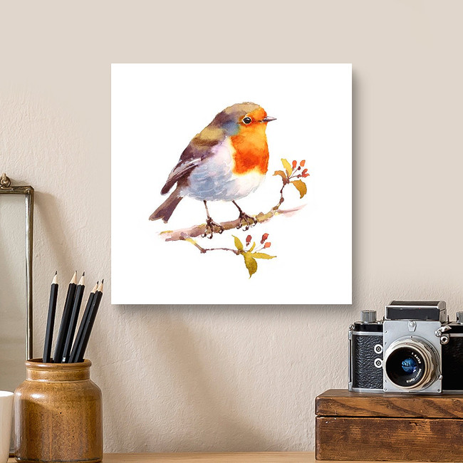 Watercolor Bird Robin On The Branch Hand Drawn Illustration Isolated Canvas Print
