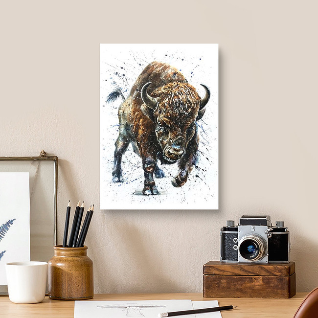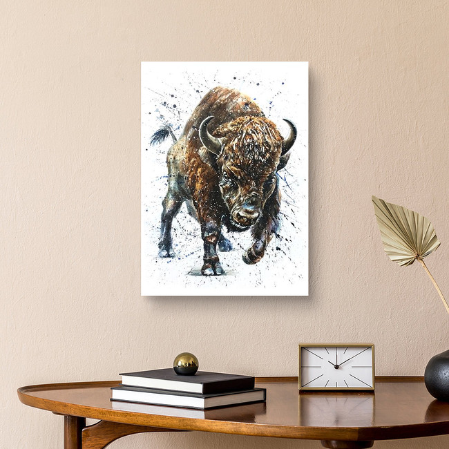 Watercolor, Buffalo, Bison, Animal, Background, Isolated, Wild... Canvas Print