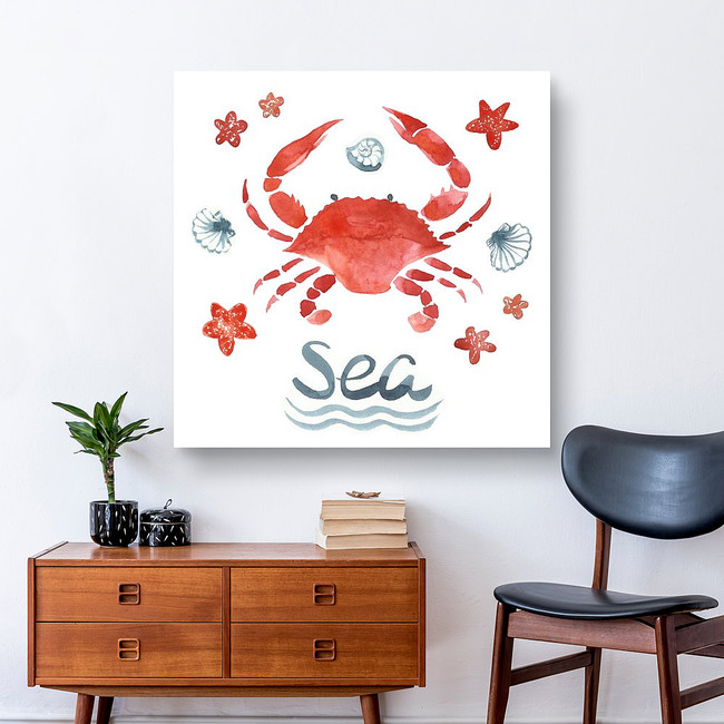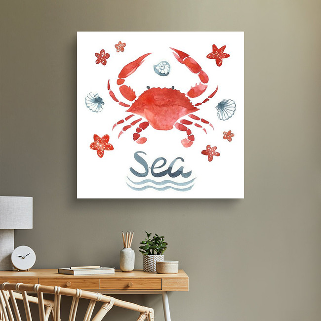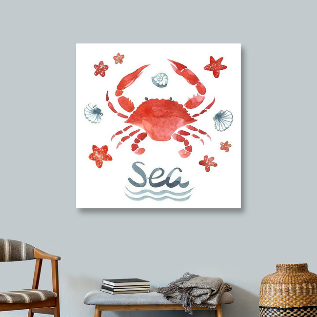 Watercolor Crab, Crab Isoleated, Seafood, Watercolor Seafood On White... Canvas Print