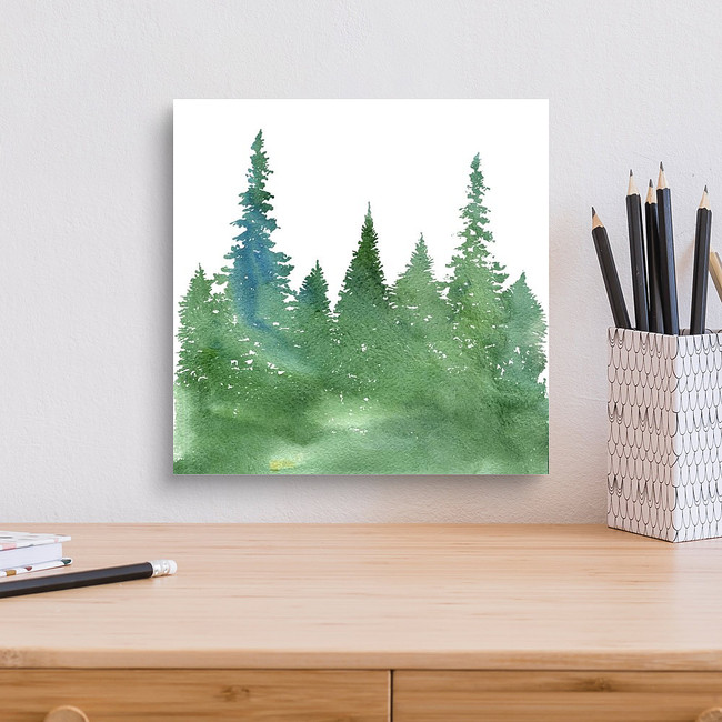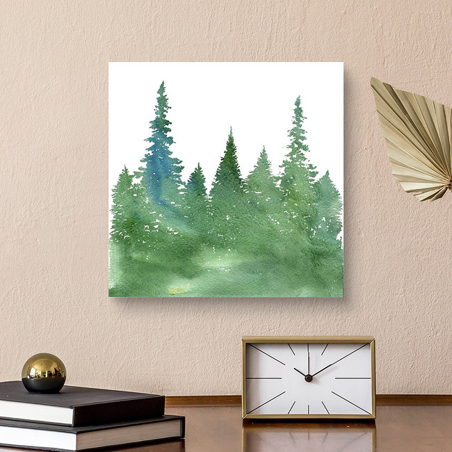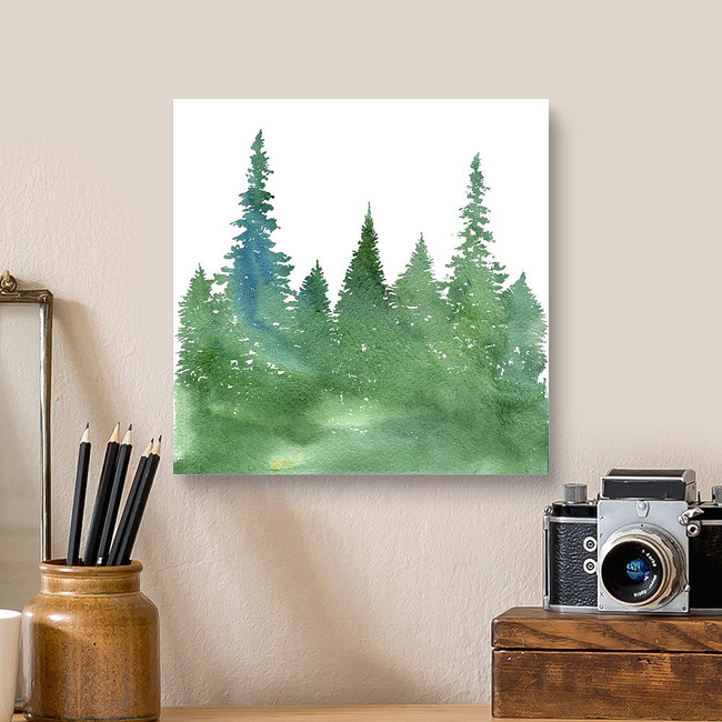 Watercolor Landscape With Fir Trees And Grass, Abstract Nature... Canvas Print