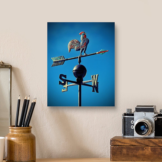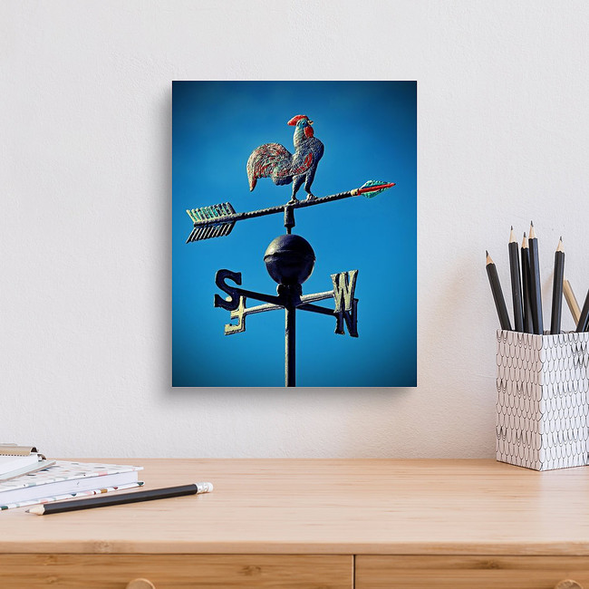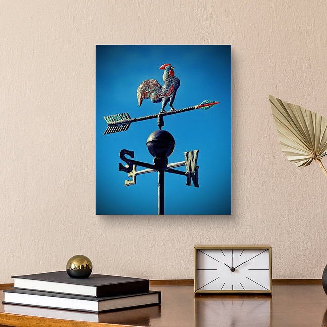 Weather Vane To Indicate The Wind Direction With A Rooster In Wrought... Canvas Print