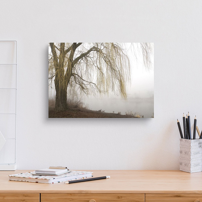 Weeping Willow Tree With Yellow Branches In Early Spring Overhangs A... Canvas Print